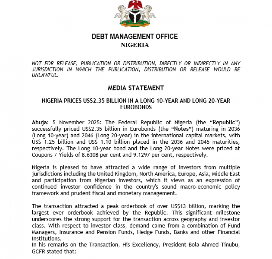 “This successful market access demonstrates the international community’s continued confidence in Nigeria’s reform trajectory and our commitment to sustainable, inclusive growth.”